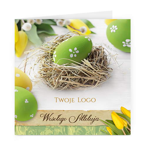 Istnieje możliwość zmiany haseł na froncie na dowolnie podaną wersję językową lub nadrukowanie własnego loga również na froncie kartki.