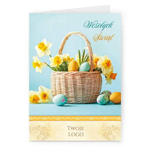 wzór: pion_103 SPECYFIKACJA: Logo i życzenia są drukowane bezpośrednio na kartce. Do każdej kartki dołączona jest biała koperta C6. Istnieje możliwość zmiany haseł na froncie na dowolnie podaną wersję językową. |