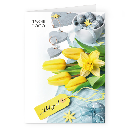 Logo i życzenia są drukowane bezpośrednio na kartce.
