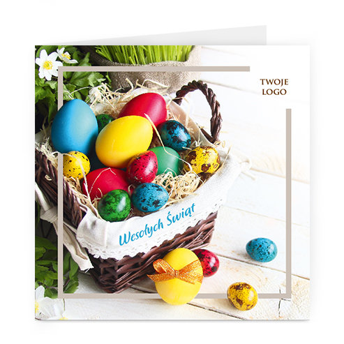 Logo i życzenia są drukowane bezpośrednio na kartce.