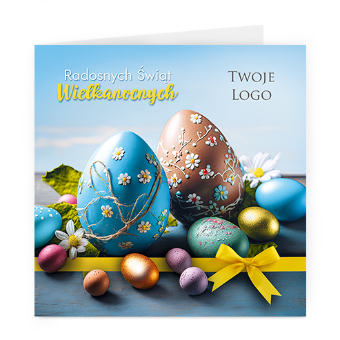 Logo i życzenia są drukowane bezpośrednio na kartce.