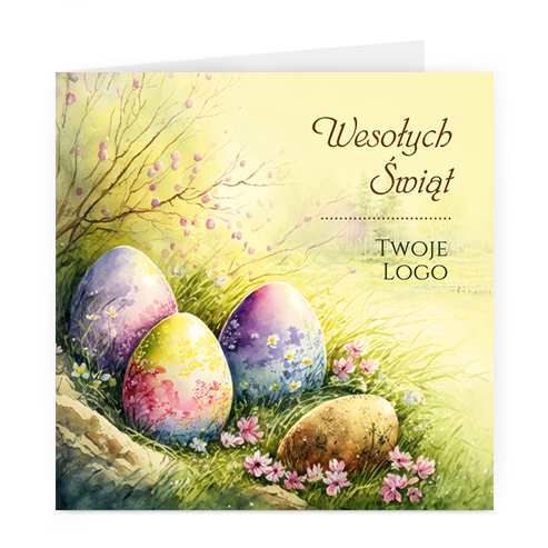 Logo i życzenia są drukowane bezpośrednio na kartce.