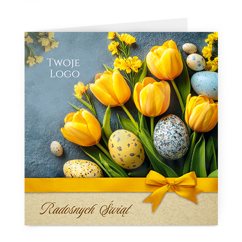 Logo i życzenia są drukowane bezpośrednio na kartce.