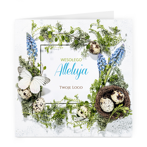 Logo i życzenia są drukowane bezpośrednio na kartce.