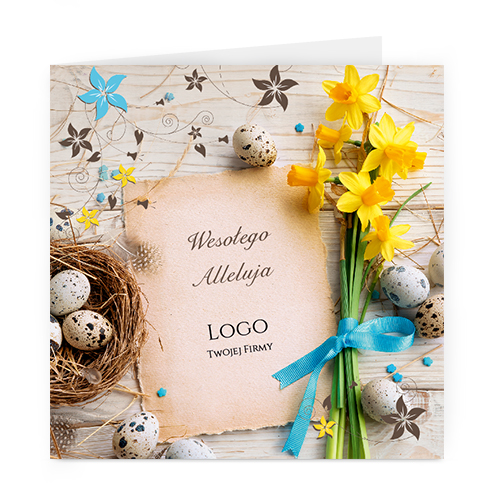 Logo i życzenia są drukowane bezpośrednio na kartce.