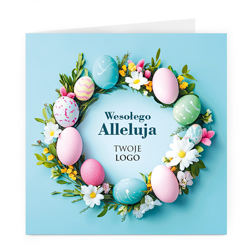 Istnieje możliwość zmiany haseł na froncie na dowolnie podaną wersję językową lub nadrukowanie własnego loga również na froncie kartki.