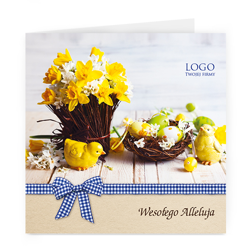 Logo i życzenia są drukowane bezpośrednio na kartce.