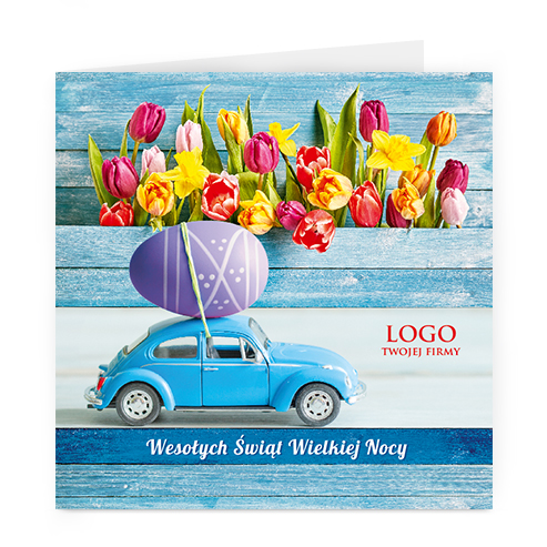 Logo i życzenia są drukowane bezpośrednio na kartce.