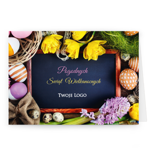 Logo i życzenia są drukowane bezpośrednio na kartce.