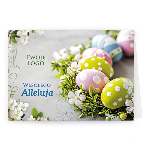 wzór: poziom_110 SPECYFIKACJA: Logo i życzenia są drukowane bezpośrednio na kartce. Do każdej kartki dołączona jest biała koperta C6. Istnieje możliwość zmiany haseł na froncie na dowolnie podaną wersję językową. |