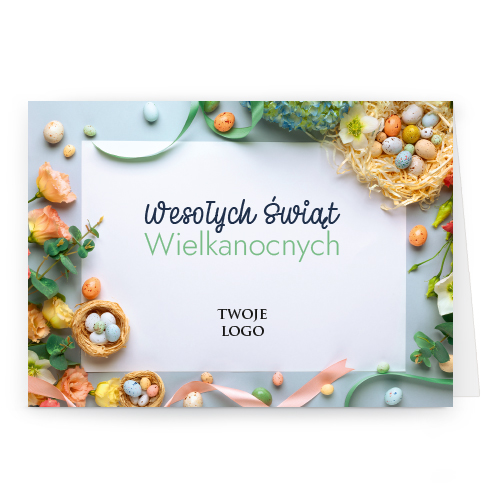Logo i życzenia są drukowane bezpośrednio na kartce.