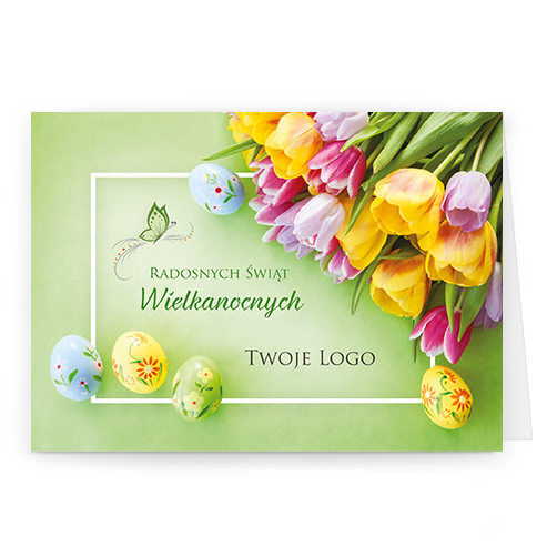 Logo i życzenia są drukowane bezpośrednio na kartce.